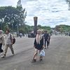 Sementara, jumlah pekerja masih menyiapkan beberapa hal di dalam lapangan utama ini. Mulai dari lampu sorot dan tempat duduk untuk penonton.