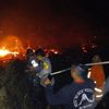 Petugas Damkar terus berupaya memadamkan api. Mobil Damkar bergantian mengisi tanki air menyiram kobaran api di lantai dua.