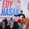 Edy kemudian memotivasi masyarakat agar tidak menyerah pada keadaan ekonomi. Ia membagikan kisahnya, yang berasal dari keluarga sederhana.