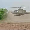 Akibatnya, kaki helikopter bergesek dengan tempat pendaratan, yang mengakibatkan helikopter terguling dan terbakar.
